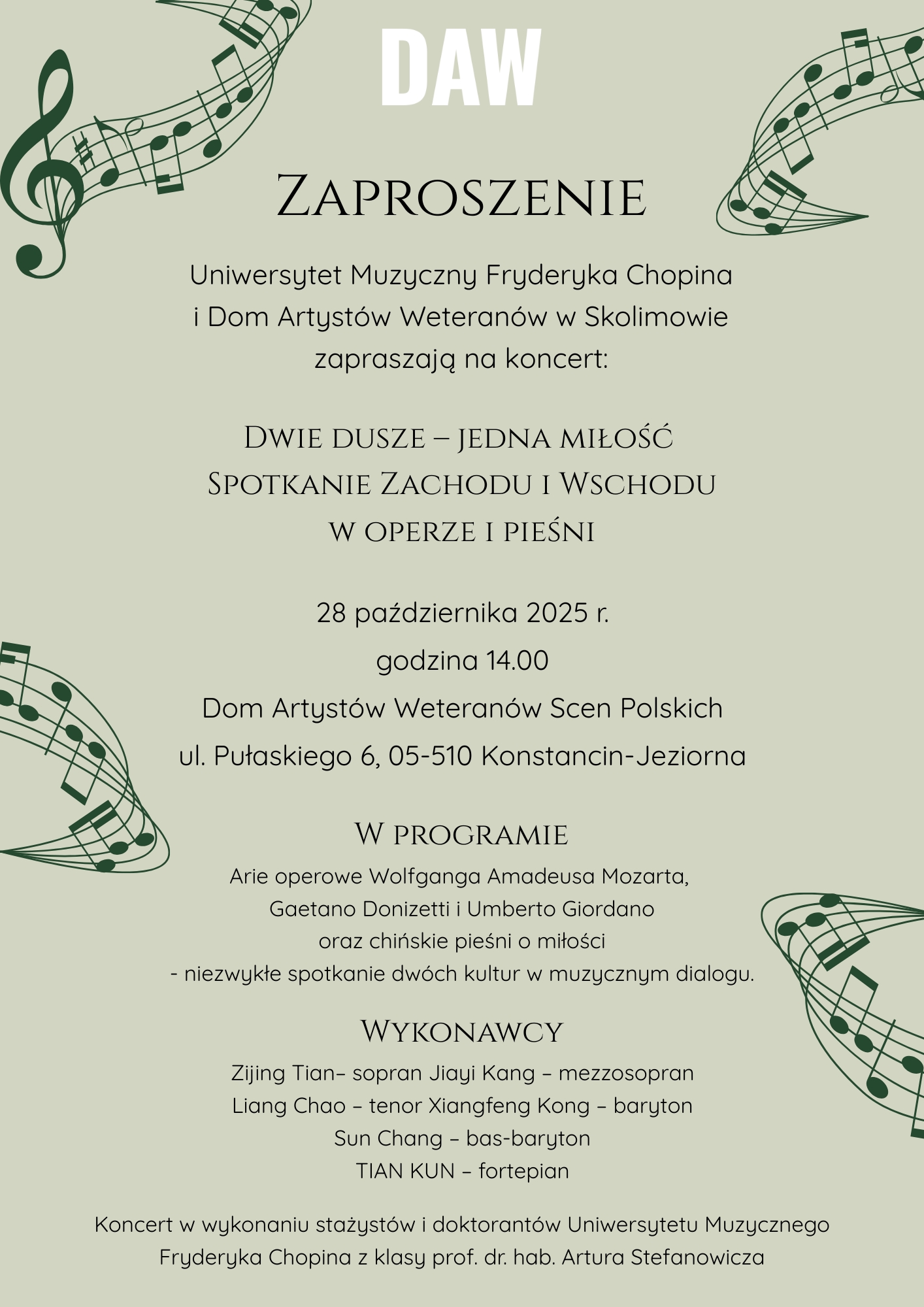 Serdecznie zapraszam wszystkich miłośników muzyki klasycznej do wspólnego przeżywania tego wyjątkowego spotkania kultur. To będzie piękne doświadczenie, w którym muzyka połączy Wschód i Zachód w jedną, pełną miłości opowieść.